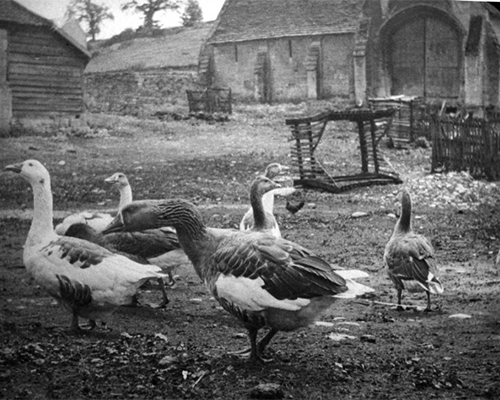 These were the cow byres or skillins - open fronted sheds - to which the cows were brought for milking. Only the north range existed in 1850, with the west part a bigger building, possibly with a hay loft over it. But by 1887 the west range, with wooden posts, and the north range, with stone pillars, were as they are now.